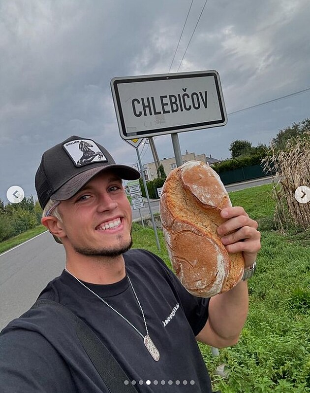 Jon Mariánek pózuje s chlebem.