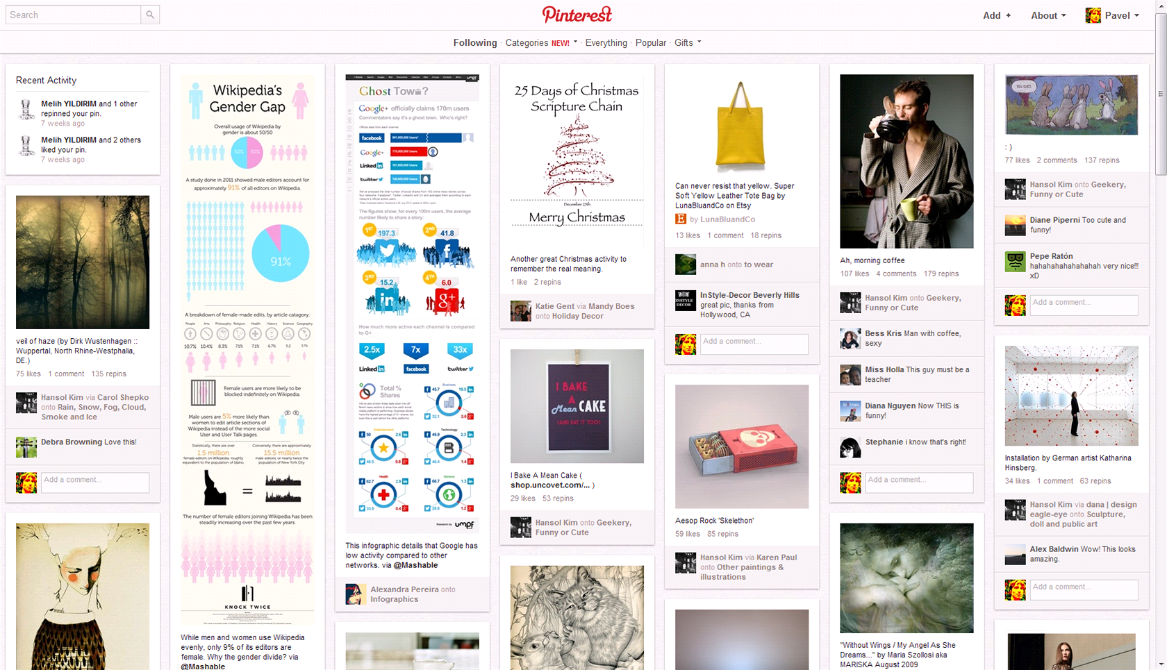 Pinterest.com - úvodní obrazovka se směsí přišpendlených obrázků