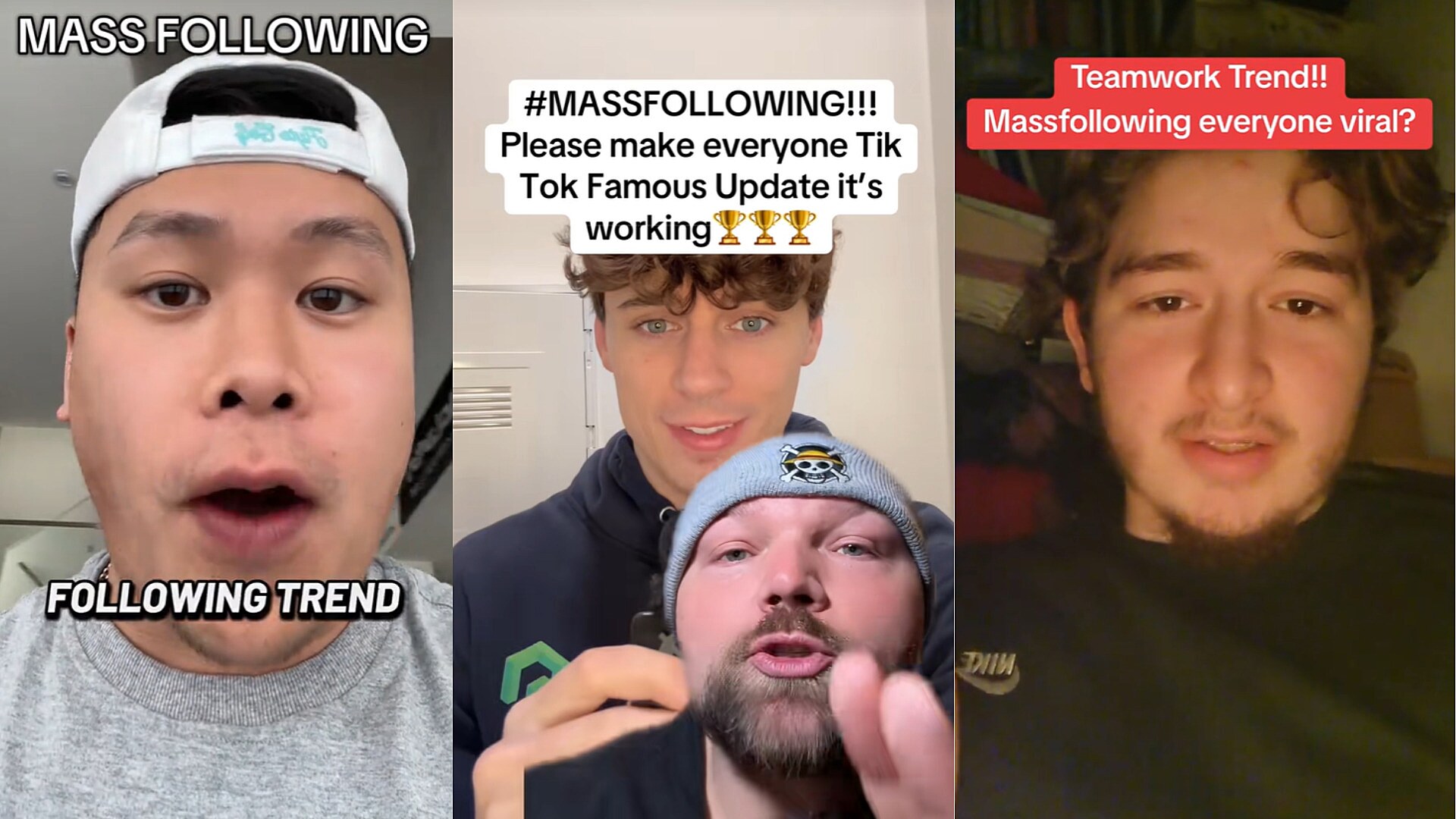 Stát se přes noc slavným je tak nyní jednodušší než kdy dříve. „Pojďme se prostě začít masivně navzájem sledovat, když bude TikTok pravděpodobně zablokován,“ říká ve svém videu tiktoker NoahGlennCarter, který celý trend odstartoval. On sám díky tomu získal jen za pár dní stovky tisíc nových sledujících. „Je to přece už jedno. TikTok bude pravděpodobně zablokovaný, tak pojďme dát všem šanci zažít, jaké to je být slavný na TikToku,“ pokračuje. Zapojit se do tohoto obrovského hnutí lze několika způsoby. Nejčastěji lidé do komentářů píší hashtag #massfollowing, čímž dávají najevo, že budou sledovat každého, kdo začne sledovat je. A skutečně to funguje. Lidé, kteří píší tyto komentáře, získávají tisíce nových sledujících jen za pár hodin.